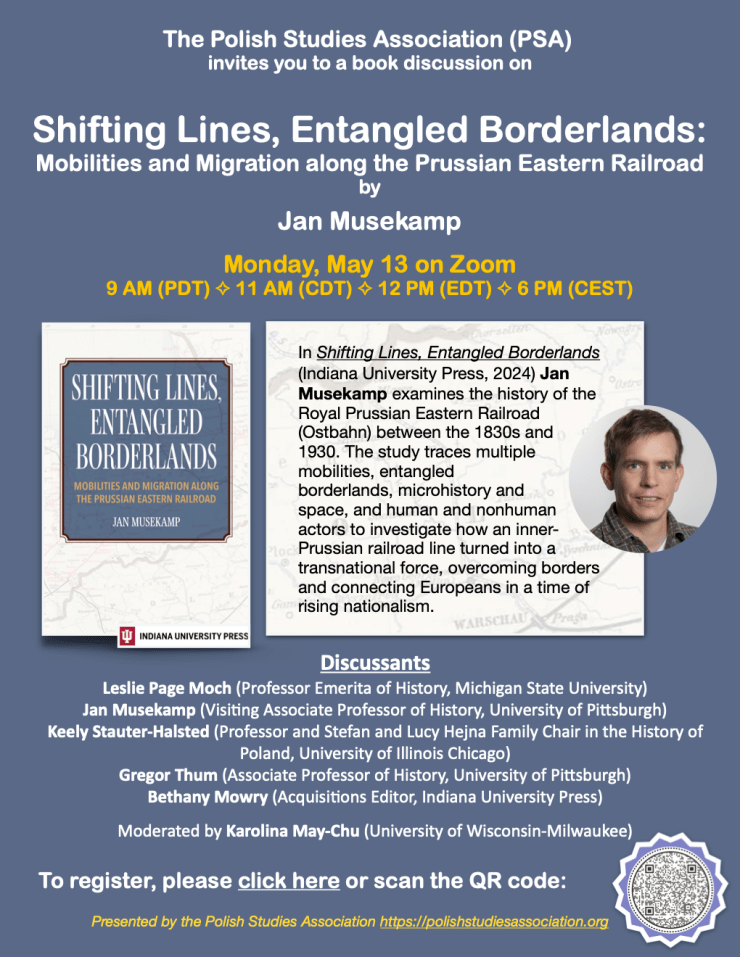 The Polish Association Studies invites you to a book discussion: Shifting Lines, Entangled Borderlands: Mobilities and Migration along the Prussian Eastern Railroad by Jan Musekamp.