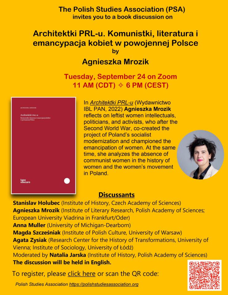 The Polish Studies Association invites you to a book discussion on Architektki PRL-u. Komunistki, literatura i emancypacja kobiet w powojennej Polsce by Agnieszka Mrozik.